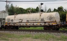 NYC 623640 is seen in the consist of CSX Q371-15 at Elsmere, DE on 8/15/20. Car is ex CR 623640 and was built 5-97 by Thrall as part of Job 989. Photo by Chris Carangi.
