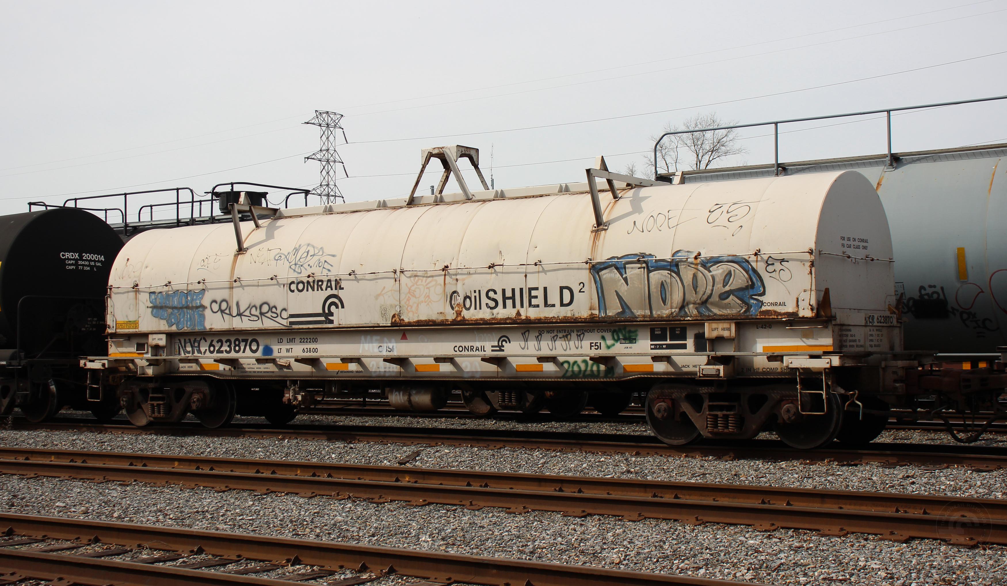 NYC 623870is seen at Elsmere, DE on 3/27/21. Car is ex CR 623870 and was built 7-97 by Thrall as part of Job 413.