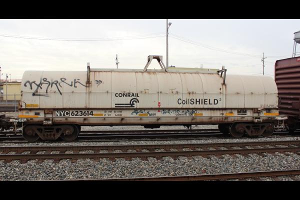 Previous Next Photo By Alan Page NYC 623894 F51 class coil car at the Dodson Road crossing in Union City on July 27, 2015. Equipment Type Class F51 Post Conrail Owner CSX Post Conrail Number CSX 623894 Year 2015 Original Date 7/27/15 Collection CRHS Conrail Photo Archive Contributions
