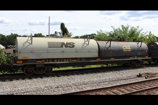 NYC 627554 F50 class coil car at the Dodson Road crossing in Union City on July 27, 2015.