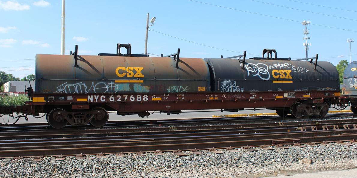 NYC 627688 is seen in the consist of CSX Q301-10 at Elsmere, DE on 7/11/15. Car is ex CR 627688/CR 752688/PC 752688 and was built 2-70.
