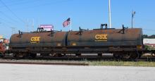 NYC 628310 is seen in the consist of CSX Q300-19 at Elsmere, DE on 8/20/16. Car is ex CR 628310, built 7-79 and was repainted CSX RA 7-02.