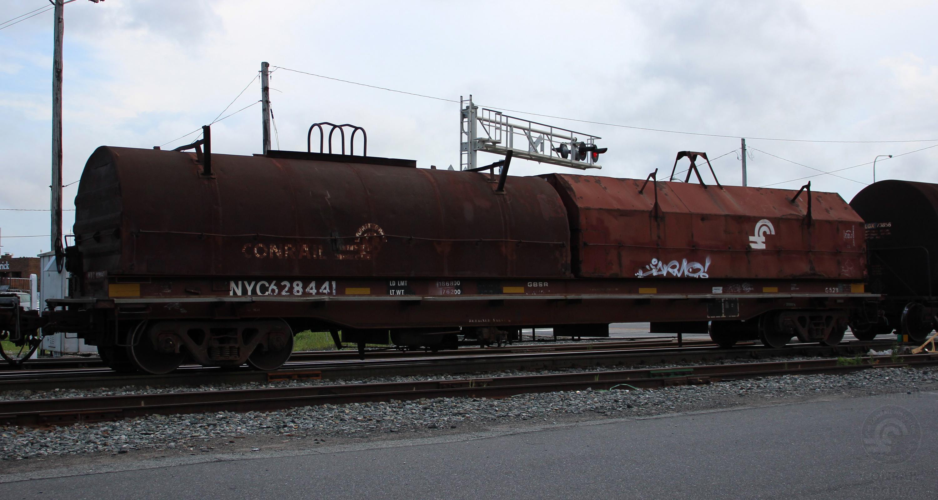 NYC 628441 is seen in the consistof CSX Q371-22 at Elsmere, DE on 7/22/18. Car is ex CR 628441 and was built 10-79 by Portec.