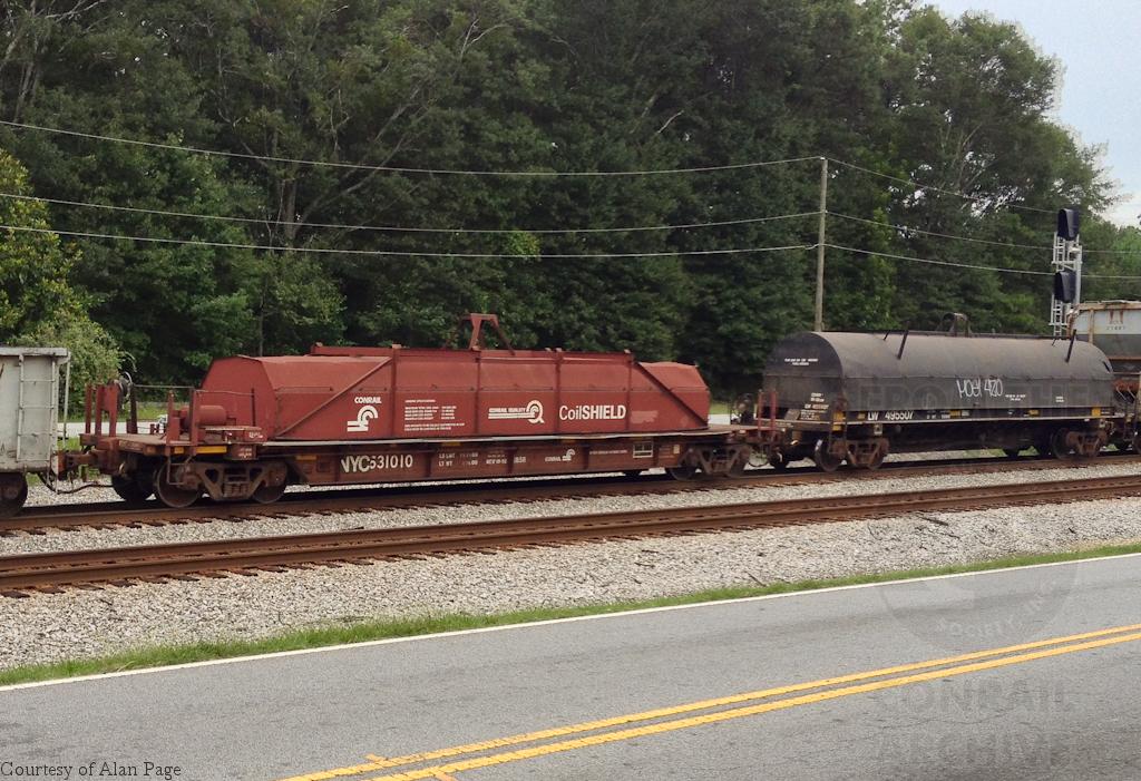 Previous Next CSXT G52S class coil car NYC 631010 rolls eastbound through Union City on July 28, 2017. Photo By Alan Page Equipment Type Class G52S Post Conrail Owner CSX Post Conrail Number CSX 631010 Year 2017 Original Date 7/28/17 Collection CRHS Conrail Photo Archive Contributions