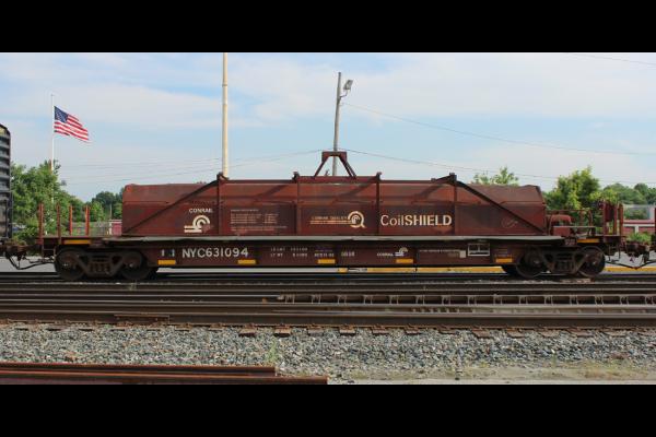 NYC 631038 is seen in the consist of CSX B522-22 at North Baltimore, OH on 6/22/23. Car is ex CR 631038 and was built 11-92by Thrall.