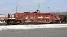 NYC 631065 is seen in the consist of CSX Q439-21 at Elsmere, DE on 2/22/15. Car is ex CR 631065 and was built 10-92 by Thrall.