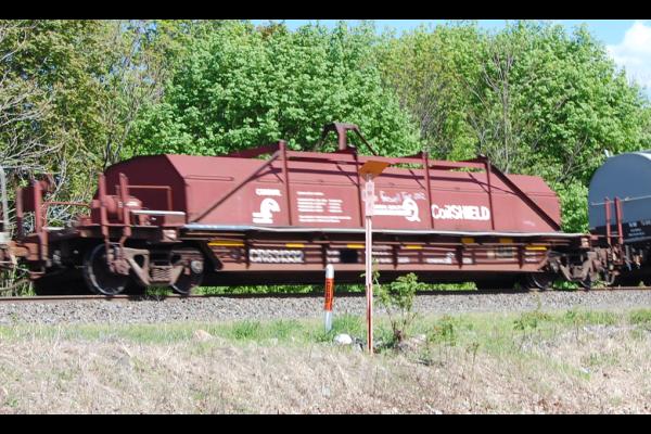 NYC 631297 is seen in the consist of CSX B523-22 at Deshler, OH on 6/22/23. Car is ex CR 631297 and was built 8-93 by HCS.
