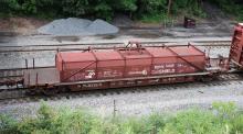 NYC 631375 is seen in the consist of CSX Q416-12 at Cumberland, MD on 6/13/18. Car is ex CR 631375 and was built 10-93 by HCS.
