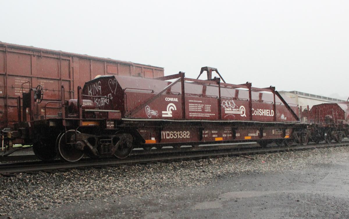 NYC 631382 is seen in the consist of CSX Q355-11 at Cumberland, MD on 6/12/14. Car is ex CR 631382 and was built 10-93 by HCS.