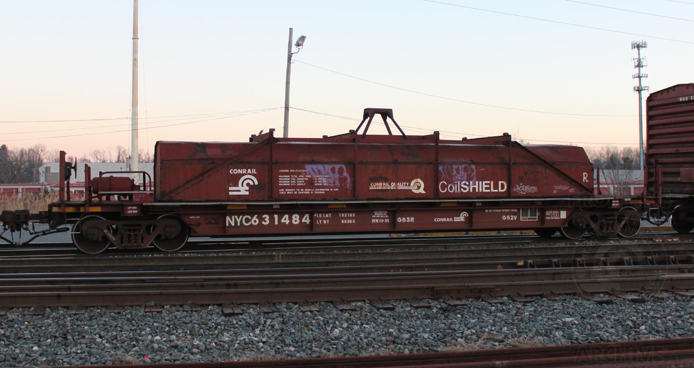 NYC 631484 is seen in the consist of CSX Q301-17 at Elsmere, DE on 2/18/17. Car is ex CR 6314874 and was built 10-95 by HCS.