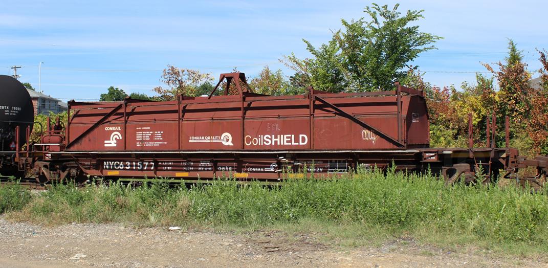 NYC 631577 is seen in the consist of CSX Q370-23 at Elsmere, DE on 7/24/16. Car is ex CR 631577 and was built 11-95 by HCS.