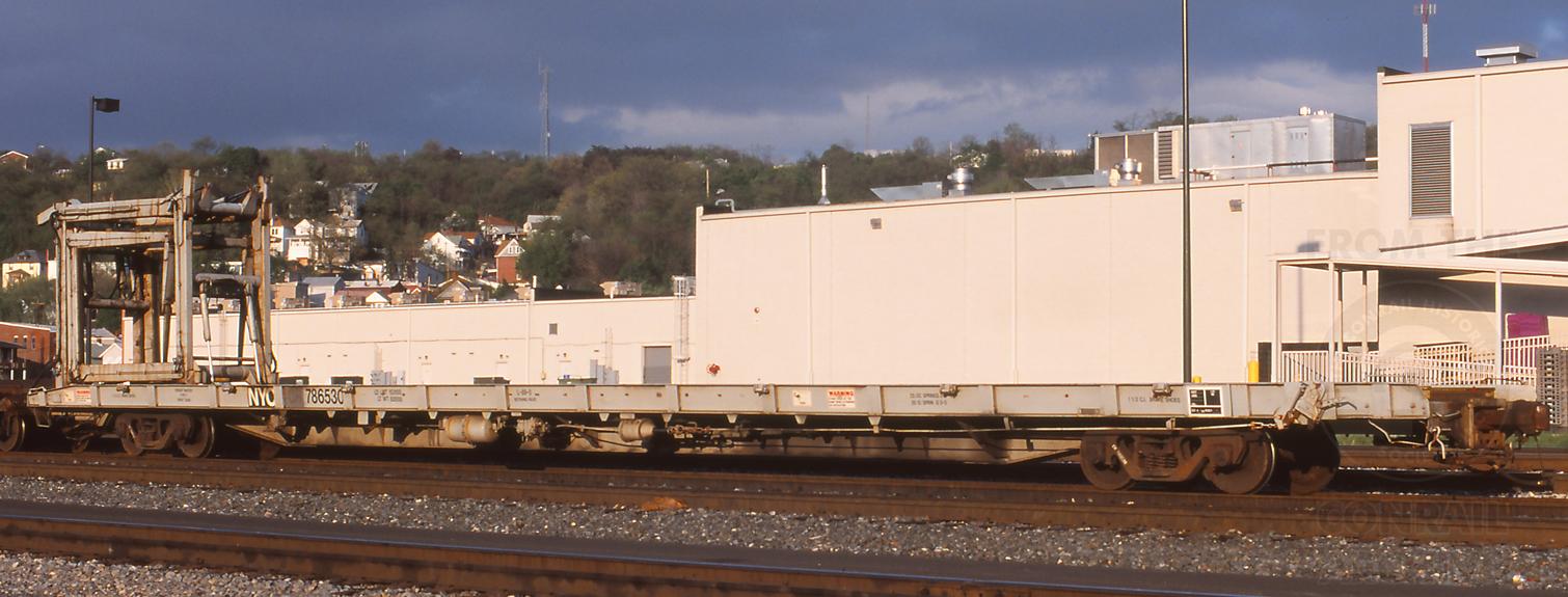 Previous Next Car is ex CR 786530/MDAX 2370 and was built 5-66. It was probably converted to this "scorpion" car around 3-8-96. (The equipment on the other end folds out/down, allowing track equipment to easily roll on/off the accompanying flat cars). Photo By Jeff Weaver Conrail Number 786530 Post Conrail Owner CSX Post Conrail Number CSX 786530 Year 2002 Original Date 4/20/02 Collection CRHS Conrail Photo Archive Contributions
