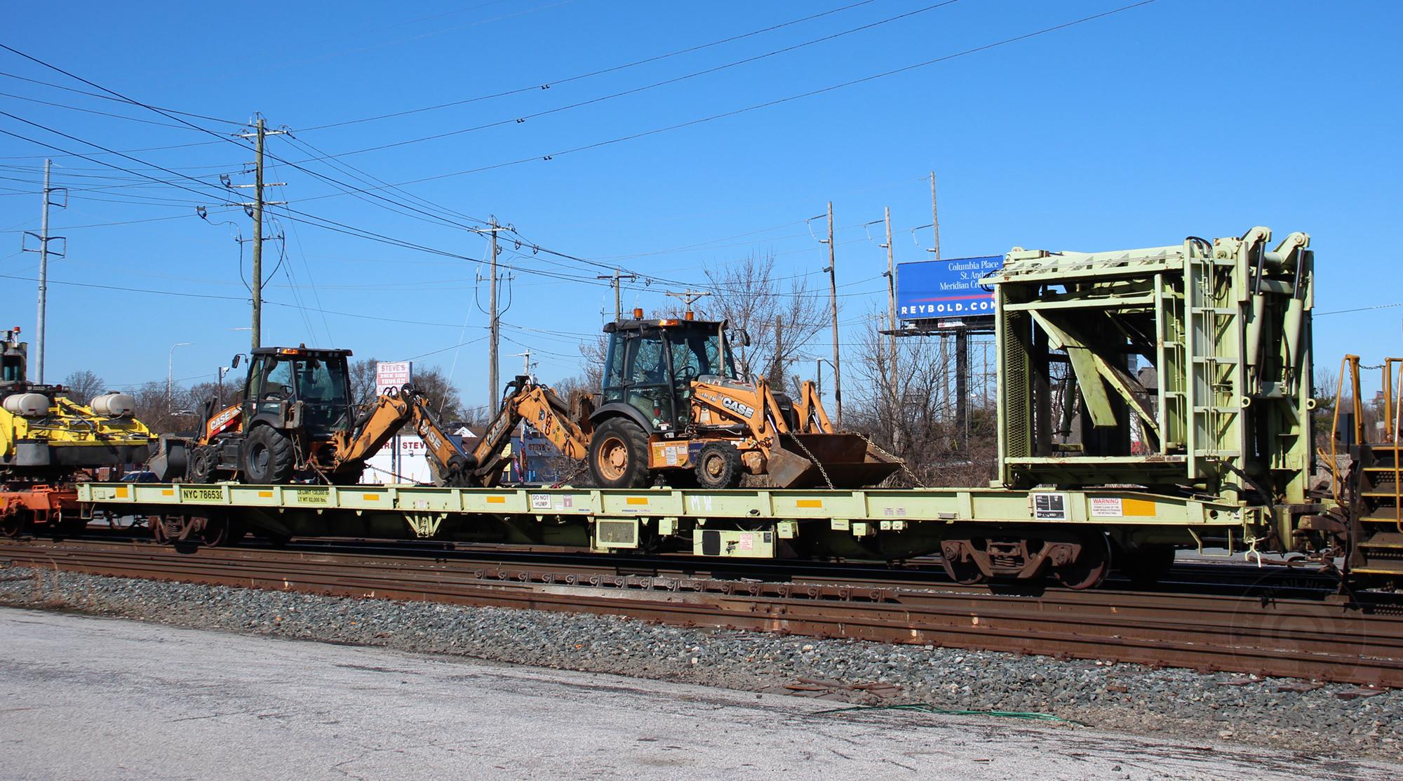 NYC 786530 is seen in the consist of CSX M422-02 at Elsmere, DE on 3/3/24. Car is ex CR 786530/MDAX 2370 and was built 4-66.