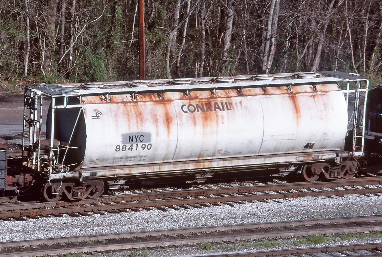 NYC 884190 is rolling into the yard on Q375 at Cumberland, MD, on 4/24/99. Car is ex CR 884190/PRR 260181.