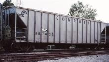 Previous Next Photo By Jeff Weaver NYC 887438 is seen at Sankertown, PA on 8/20/98. Car is ex CR 884738/PC 887438. Equipment Type Class H51C Conrail Number 887438 Post Conrail Owner CSX Post Conrail Number CSX 887438 Year 1998 Original Date 8/20/98 Collection CRHS Conrail Photo Archive Contributions
