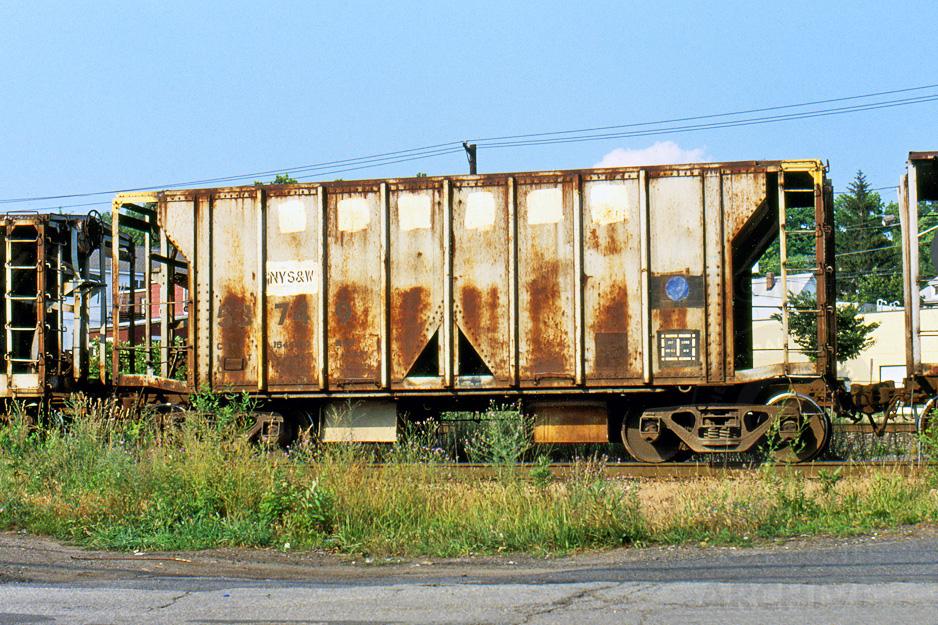 NYSW 53749 (ex-CR 53749), an old ACF two bay covered hopper converted to a ballast car is now owned and on the NYSW at Ridgefield Park, NJ 7/2006