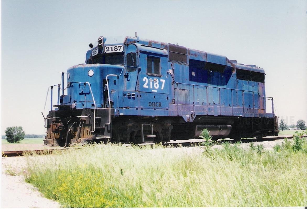 Ohio Central(OHCR) 2187, ex CR 2187, nee RDG 3619, sits at an unknown location in this undated photo. There are unconfirmed reports this engine was converted to a road slug. Photographer unknown, Chris Howe collection