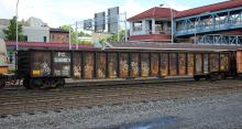 CR 598813 is seen in the consist of NS 12G at Altoona, PA on 6/21/19. Car is ex PC 598813 and was built 6-72 by Fruehauf.