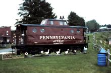 Previous Next PRR 477852, ex CR 23081, restored to its original colors in Gallitzin, PA on June 23, 1998. Photo By Chris Howe Equipment Type N5 and Subclass Cabooses Conrail Number 23081 Year 1998 Original Date 6/23/98 Collection CRHS Conrail Photo Archive Contributions