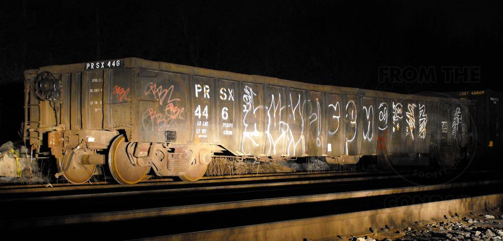PRSX 446 is seen at Perryville, MD on 12/28/13. Car is ex CR 583963/PC 604093/NYC unknown and was built 6-67.