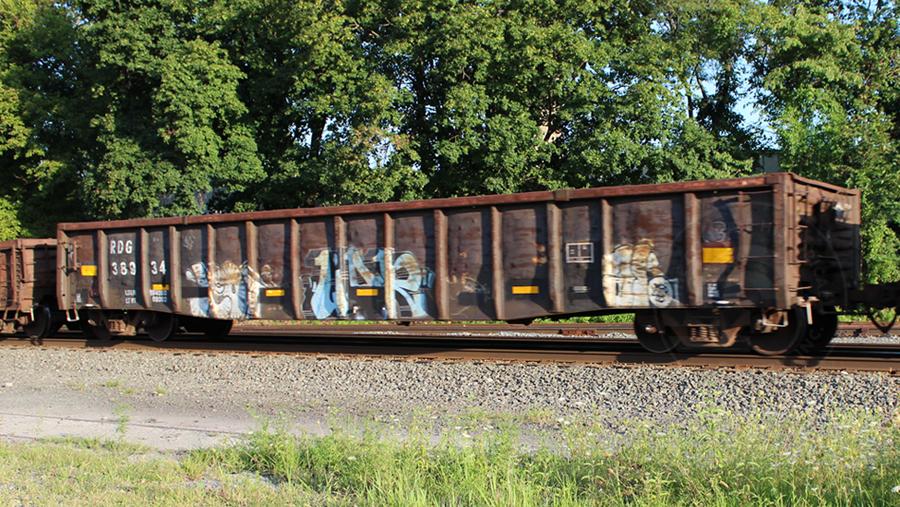 RDG 38934 is seen in the consist of WB NS 60Z at Sinking Spring, PA on 8/16/14. Car was built 12-75 and would have been classed GR52C by CR.
