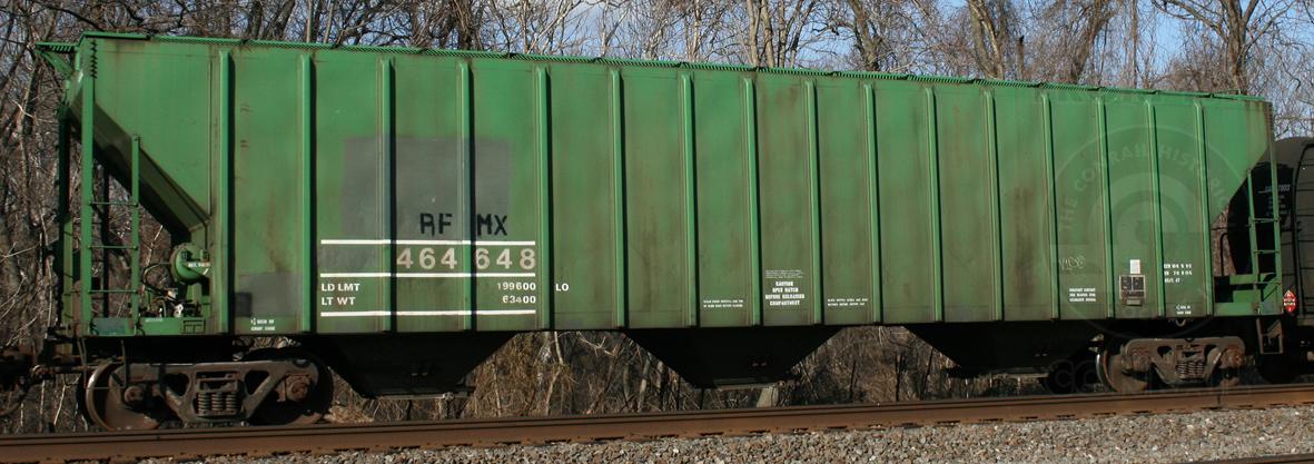 RFMX 464648 is seen in 13G at Cove, PA on 3/19/11. Car is ex BN 464648/CR.