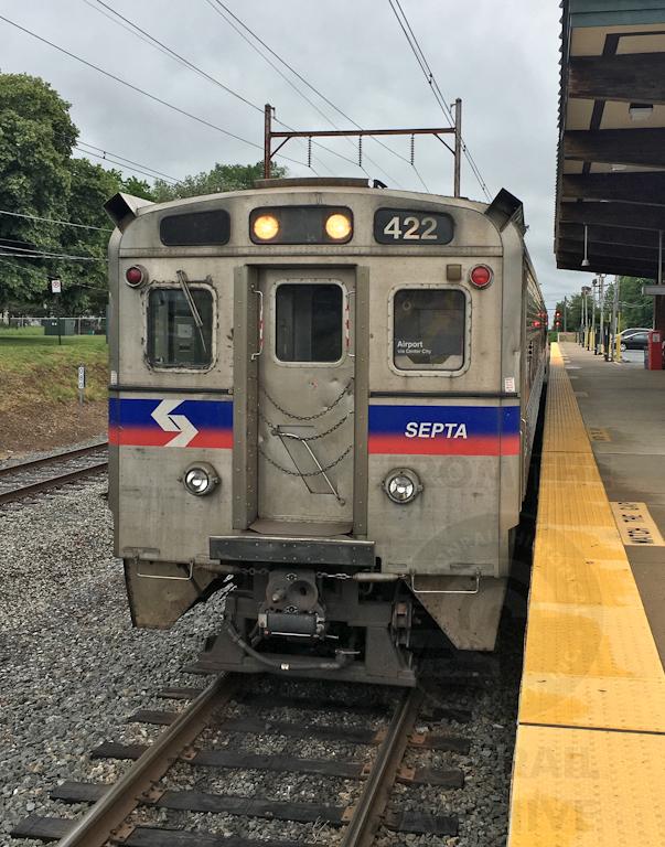 Surviving Commuter passenger service Silverliner IV pair 422and 421wait for green at Warminster station on May 29, 2021.
