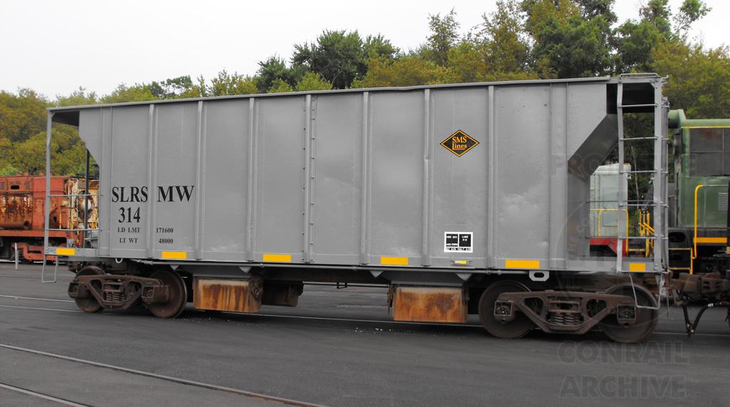 SLRS 314 is seen at Bridgeport NJ on 7/18/12. Car is ex BDRV 306/MOWX 5506/CR 52735/PRR 257248 and was originally built as a covered hopper in 7-55 and rebuilt by CR to a ballest hopper in 8-76.