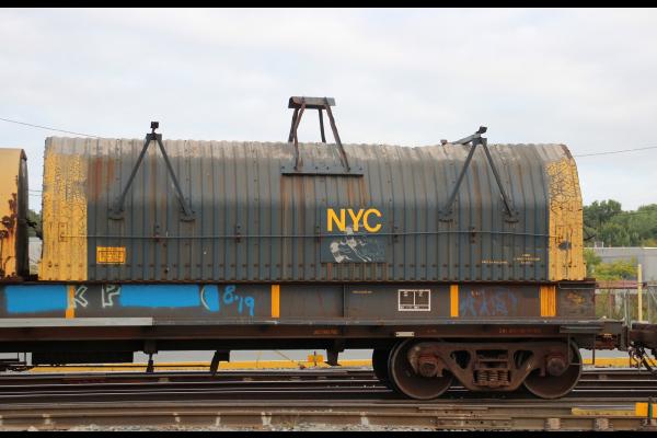 Previous Next Photo By Chris Howe While not technically a survivor car, NS 165360 features a Conrail coil shield that originally came from a class F51 coilshield car. Equipment Type Coil Car Hoods Year 2010 Original Date 1/18/10 Collection CRHS Conrail Photo Archive Contributions