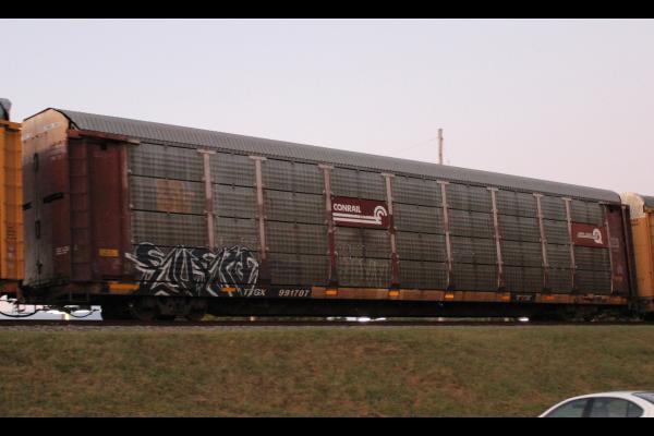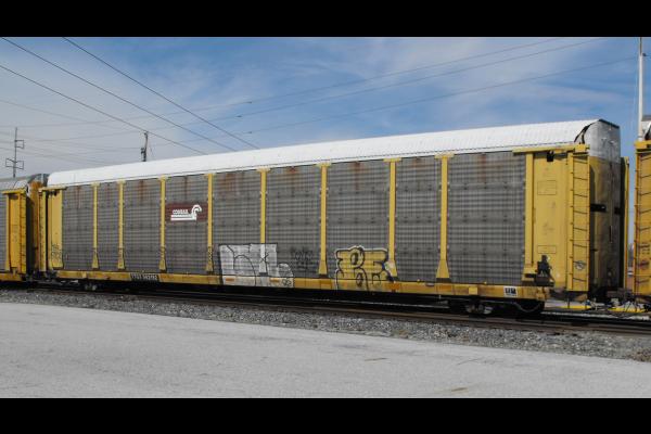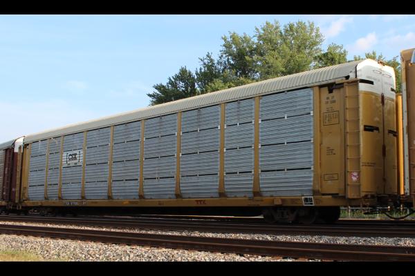 TTGX 156433 is seen in the consist of CSX Q296-12 at Cumberland, MD on 6/15/16. Rack was built as CR 8057, a CR ML2L class rack, in 4-90 then was rebuilt, repainted and renumbered to NS 28003 in 5-14. Rack is now classed FB548 by NS.