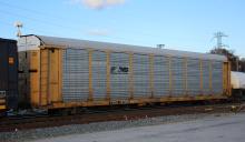 TTGX 157202 is seen in the consist of CSX Q409-26at Elsmere, DE on 11/26/21. Rack was built as CR 8482, a CR ML2L class rack, in 6-90. It was then rebuilt, repainted and renumbered to NS 29838 in 6-19 by TrinityRail as part of Job C1009. Rack does not have a new NS class stenciled on it.
