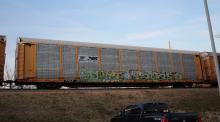 TTGX 157341is seen in the consist of CSX M216-16 at Newark, DE on 2/18/23. Rack was built as CR 7502, a CR ML2K class rack, in 1-89. It was then rebuilt, repainted and renumbered to NS 29841 in 7-19 by MEI ESTL. Rack is now classed FB547 by NS.
