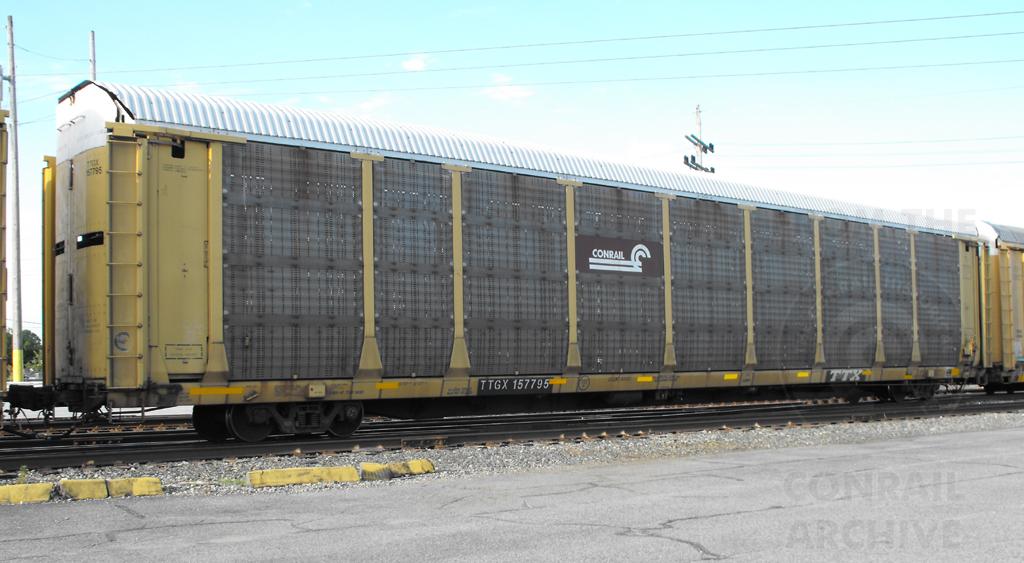 TTGX 157795 is seen on Q217-02 at Elsmere DE on 7/2/12. Rack number is CR 8083, built 3-90,rebuilt 2-98 and is now owned by CSX.