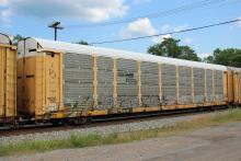 TTGX 158331 is seen in the consist of CSX Q372-08 at North Branch, MD on 7/8/20. Rack was built as a unknown CR ML2G class rack in 6-87. It was then rebuilt, repainted and renumbered to NS 26122 in 2-05. Rack is now classed FB545 by NS. Photo by Chris Carangi.