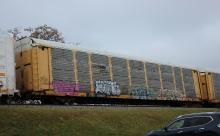 TTGX 158544is seen in the consist of CSX Q217-30 at Newark, DE on 12/30/21. Rack was built as CR 8158, a CR ML2L class rack, in 4-90. It was then rebuilt, repainted and renumbered to NS 27325 in 2-06. Rack is now classed FB548 by NS.