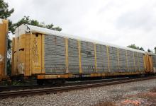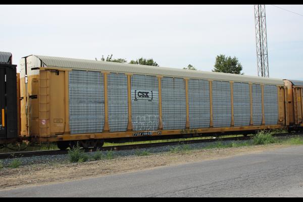 TTGX 158669 is seen in the consist of CSX Q138-15 at St. Denis, MD on 8/16/20. Rack was built as CR 8300, a CR ML2L class rack, in 5-90. It was then rebuilt, repainted and renumbered to NS 27289 in 3-06. Rack is now classed FB548 by NS, but is also stenciled ML2L. Photo by Chris Carangi.
