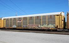 TTGX 158777 is seen in the consist of CSX Q216-05 at Elsmere, DE on 9/7/19. Rack number is CR 8855, built 4-90, rebuilt 2-98 and is now owned by CSX.