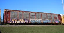 TTGX 159352is seen in the consist ofM216-13 at Newark, DE on 10/16/22. Rack number is CR 6001, built 6-87 and is now owned by CSX.