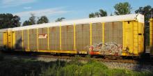 TTGX 159789 is seen on Q261-10 at Cumberland MD on 8/11/12. Rack number is CR 8418, built 1-87, rebuilt & repainted yellow 3-98 and is now owned by NS.