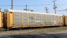 TTGX 159804 is seen in NS paint in the consist of CSX Q217-22 at Newark, DE on 7/22/14. Rack was built as a unknown CR ML2G class rack in 6-87 and then rebuilt, repainted and renumbered to NS 26270 in 12-04. Rack is now classed FB545 by NS, but is also still lettered ML2G.