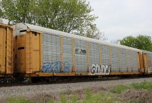 TTGX 159823is seen in the consist of CSX Q216-28 at Newark, DE on 5/1/22.Rack was built as CR 7659, a CR ML2Kclass rack, in 2-89.It was then rebuilt, repainted and renumbered to NS 29875 in 9-19 by THCG as part of Recert Job C1009.Rack does not have a new NS rack class stenciled on it.I have now photographed this rack in both CR & NS paint.