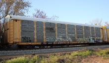 TTGX 160015is seen in the consist of CSX Q216-16 at Newark, DE on 4/18/18. Rack was built as CR 8148, a CR ML2L class rack, in 4-90, then was rebuilt, repainted, and renumbered to NS 27329 in 2-06. Rack is now classed FB548 by NS