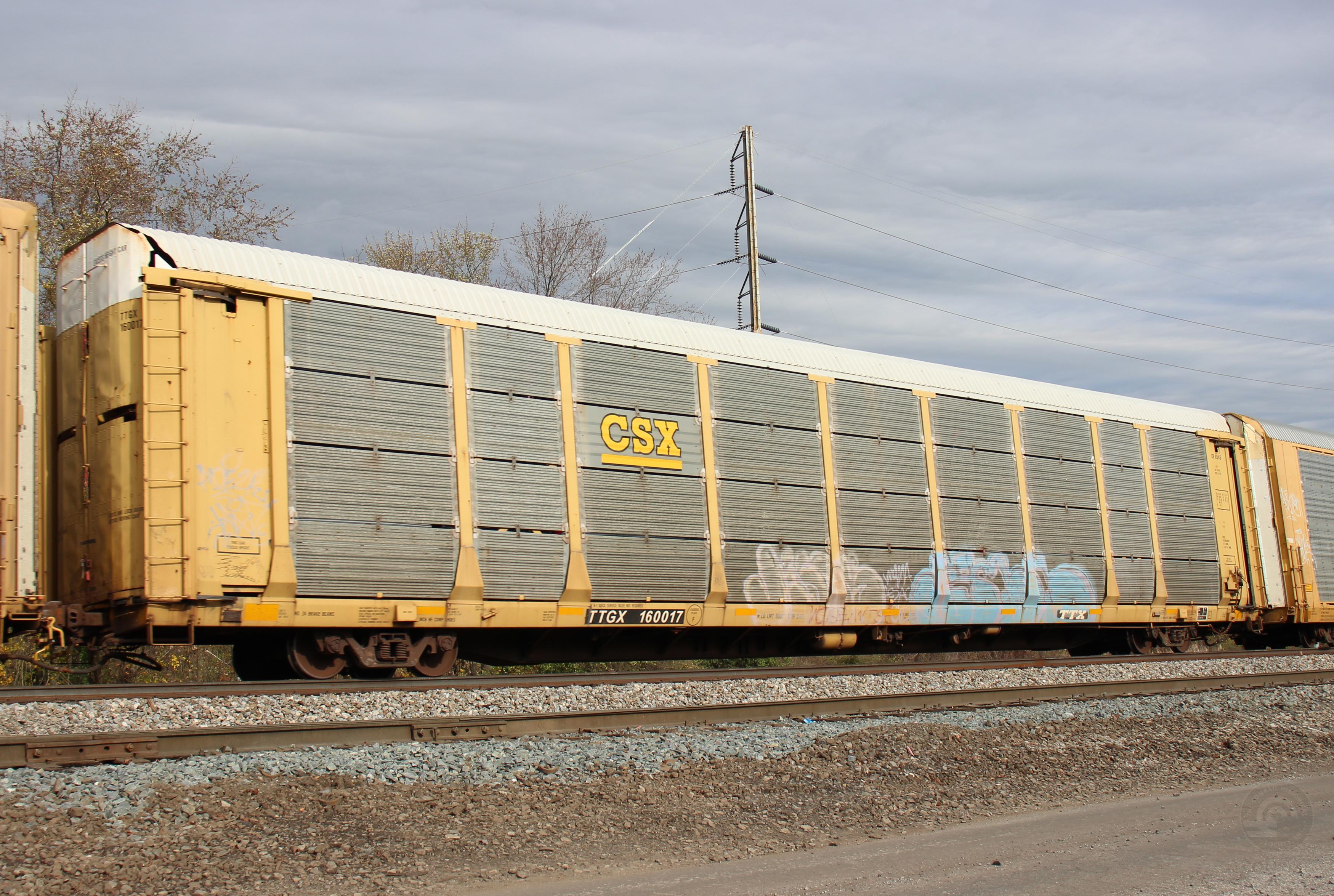 TTGX 160017is seen in the consist of CSX Q216-12 at Elsmere, DE on 11/15/20.Rack number is CR 8545, built 6-90 and was rebuilt and repainted CSX in 3-07.