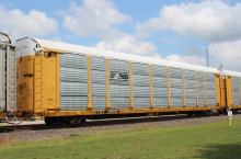 TTGX 160396 is seen in the consist of CSX M565-06 at Deshler, OH on 8/8/24. Rack was built as CR 8394, a ML2L class rack, in 5-90. It then was rebuilt, repainted and renumbered to NS 60422 in 6-24 by MEI ESTL. Rack has no new NS rack class stenciled on it. I have now photographed this rack in both CR & NS paint.