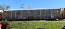 TTGX 160811 is seen in the consist of CSX Q217-28 at Newark, DE on 4/28/15. Rack was built as a unknown CR ML2G class rack in 6-87 then rebuilt, repainted and renumbered to NS 26126 in 11-03. Rack is now classed FB545 by NS.