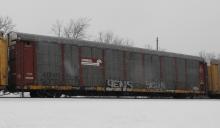 TTGX 160863 is seen in the consist of CSX Q216-13 at Newark, DE on 2/15/14. Rack number is CR 7496, built 1-89 and is now owned by NS.