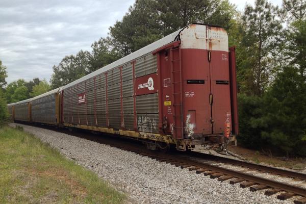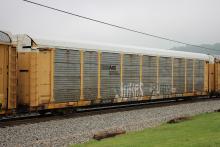 TTGX 253920 is seen in the consist of CSX Q137-07 at Cumberland, MD on 7/8/20. Rack number is CR 1461 and was built 5-86. It was rebuilt and repainted NS in 7-03. Rack is still stenciled ML2E. Photo by Chris Carangi.