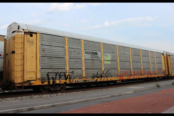 TTGX 253920 is seen in the consist of CSX X216-28 at Perryville, MD on 11/29/20.Rack number is CR 1461 and was built 5-86. It was rebuilt and repainted NS in 7-03. Rack is still stenciled ML2E.