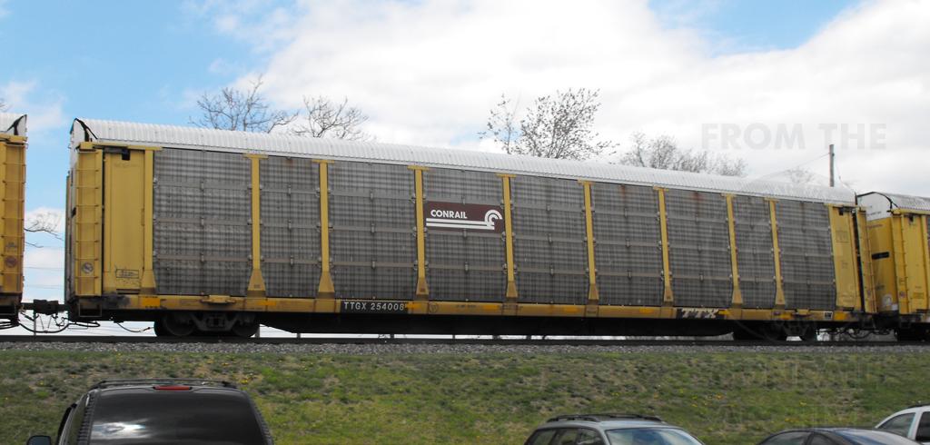 TTGX 254008 is seen on CSX Q216-11 at Newark DE on 4/13/13. Rack number is CR 7603 and is now owned by NS.