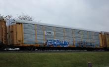 TTGX 254064 is seen in the consist of CSX Q217-05 at Newark, DE on 12/5/20. Rack was built as CR 1554, a CR ML2D class rack, in 12-85. It was rebuilt, repainted and renumbered to CSXT B-1554 in 3-20 by MEI ESTL. This is the second time this rack was repainted CSX as it was first repaintedin 11-06. I have now photographed this rack in both CSX schemes.